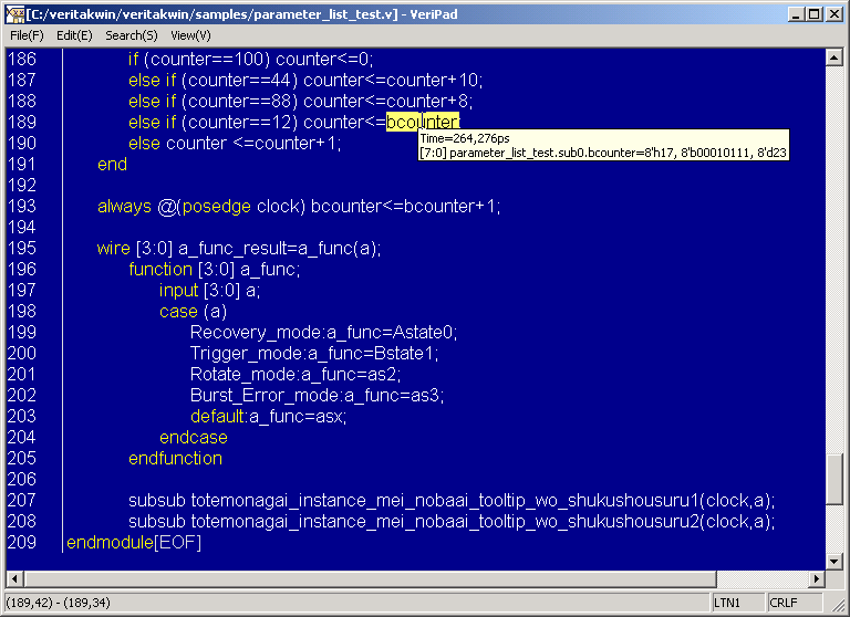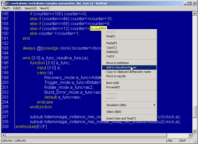 By WaveformView, we realize that [7:0] counter jump was caused by loading [7:0] bcounter at line 189 Non-Blocking statement.